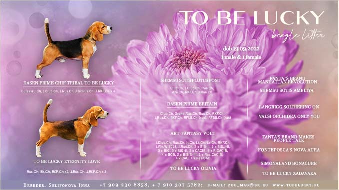 мама щенков TO BE LUCKY ETERNITY LOVE |